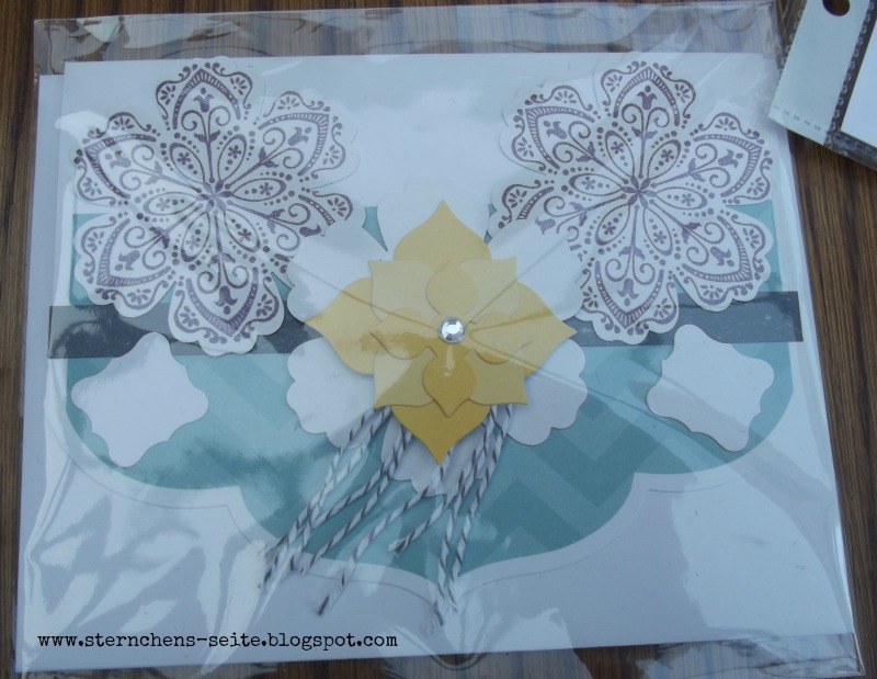 Da fällt mir gerade beim Schreiben auf, dass ich den ein oder anderen Swaps vergessen habe zu fotografieren. Die gingen zu dem Zeitpunkt gerade rum und wurden bewundert. Eine Karte habe ich auf meinen Fotos noch entdeckt. Mitten auf einer Schneidemaschine habe ich sie fotografiert.