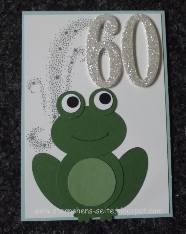 ich durfte mal wieder eine besondere Karte für einen runden Geburtstag gestalten. Als Vorgabe hatte ich den Namen des Geburtstagskindes, die Runde Zahl und das sie Frösche mag.