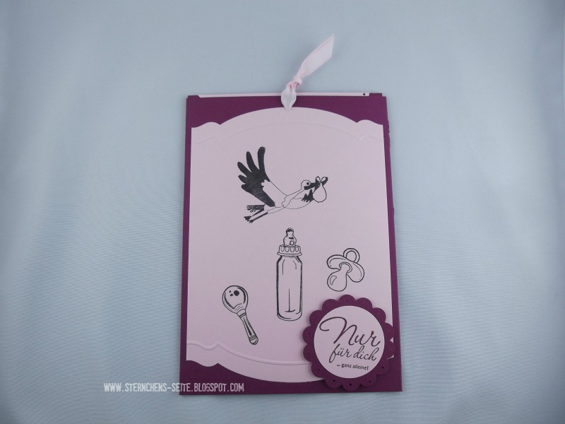 ich hatte den Auftrag bekommen für eine Babyparty eine Karte zu machen. Die werdende Mutter sollte für sich einen Gutschein bekommen.