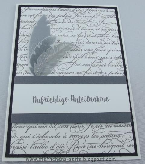 heute zeige ich Euch eine Karte für einen sehr traurigen Anlass. Eine liebe Arbeitskollegin hat leider in der Familie gleich zwei Menschen verloren. Mir fehlen dann immer die richtigen Worte.