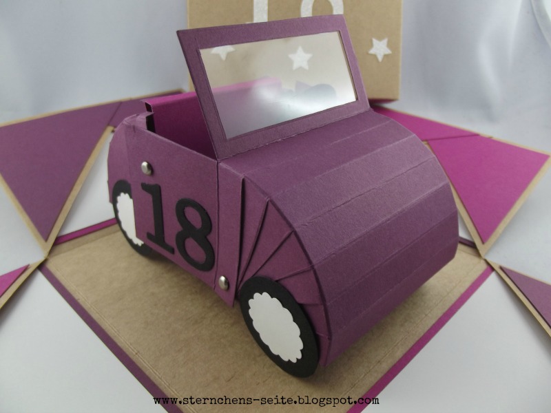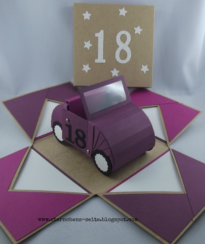 Das Geburtstagskind hatte von den Auftraggebern bereits den Führerschein geschenkt bekommen. Aber so ganz mit leeren Händen wollten sie auf dem Geburtstag nicht erscheinen. Also gab es eine Explosionsbox von mir.